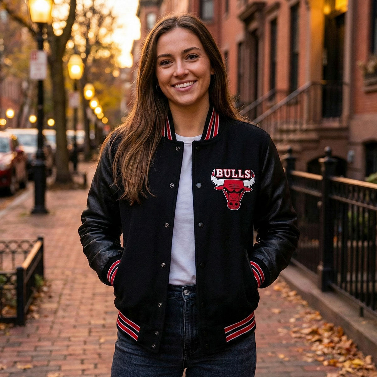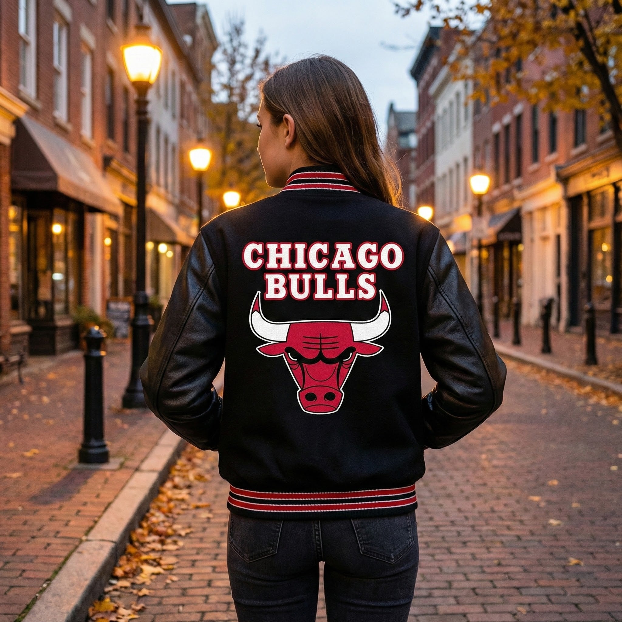 Letterman Chicago Bulls Black Varsity Jacket - NHL