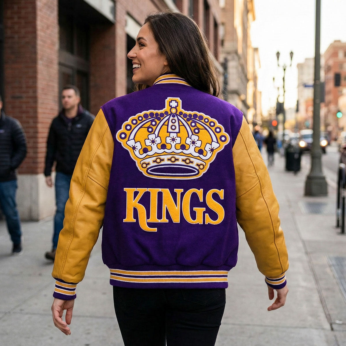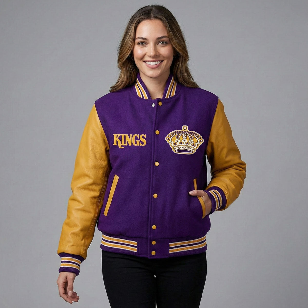 Letterman Los Angeles Kings Purple and Yellow Varsity Jacket - NHL