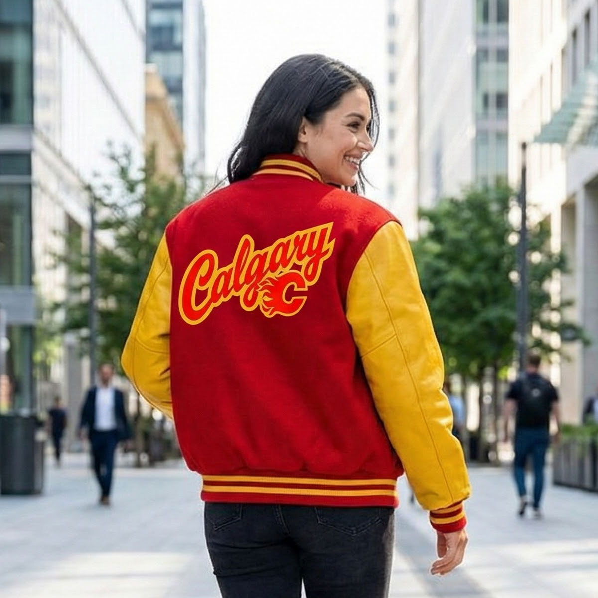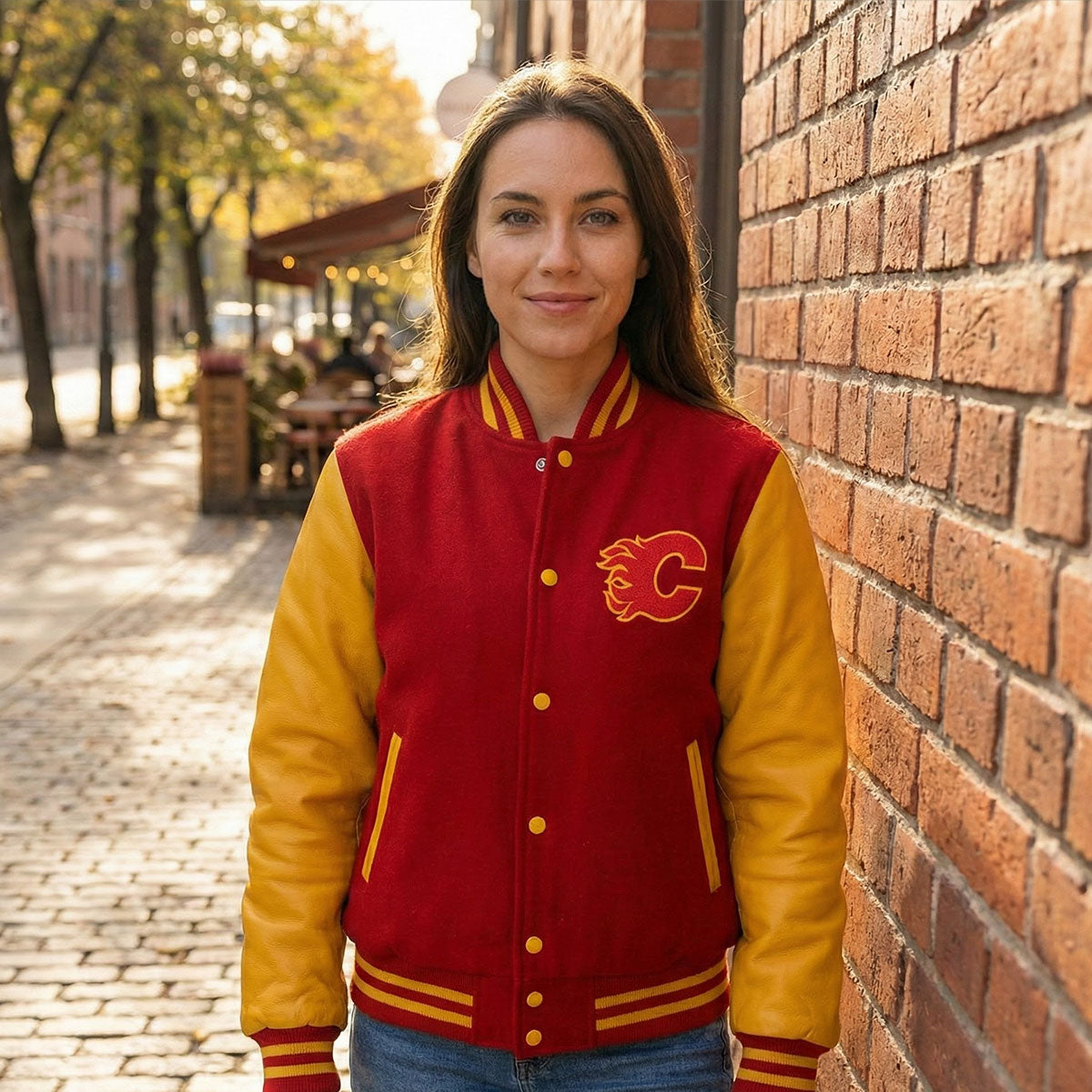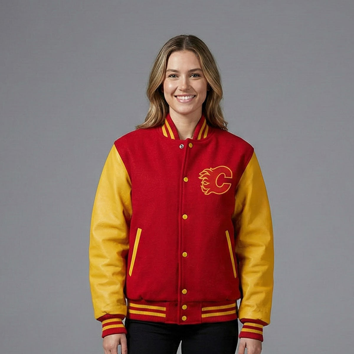 Letterman Calgary Flames Red and Yellow Varsity Jacket - NHL