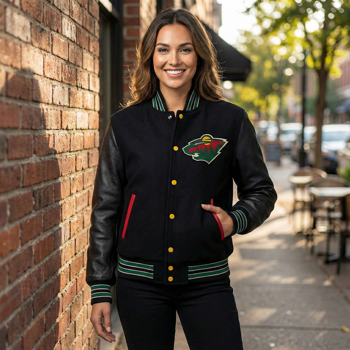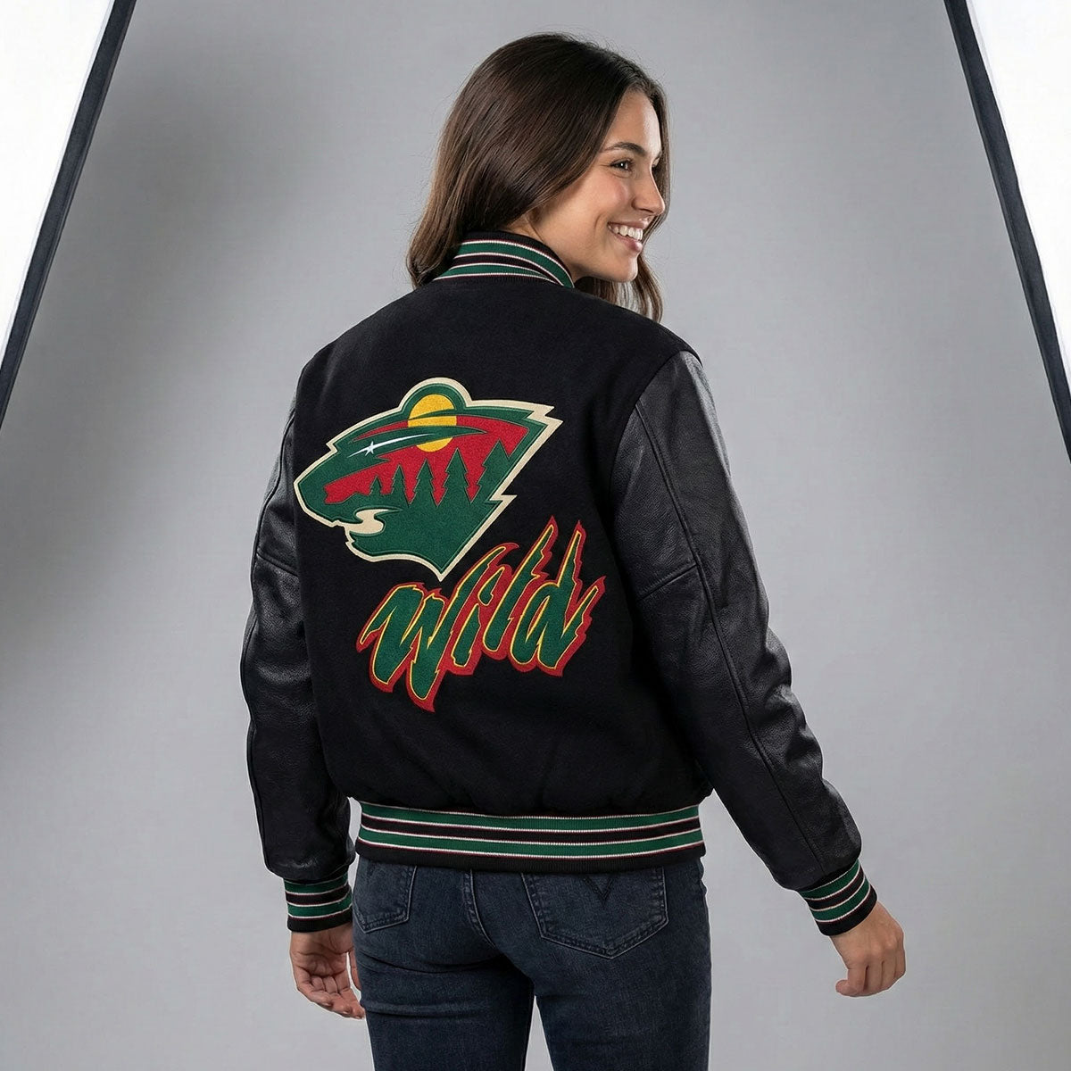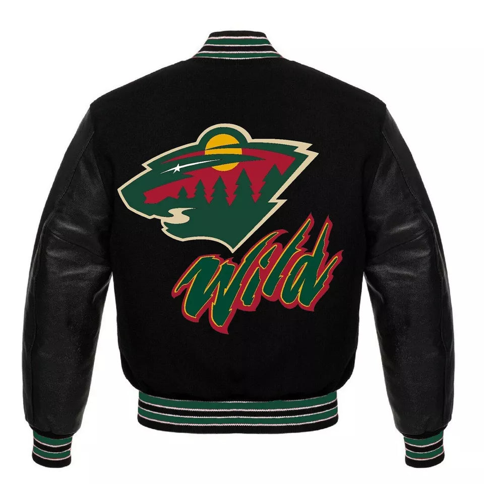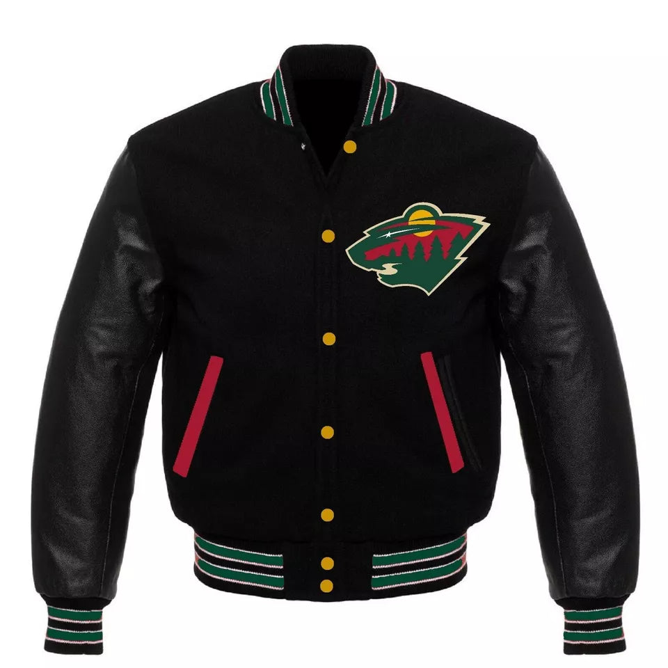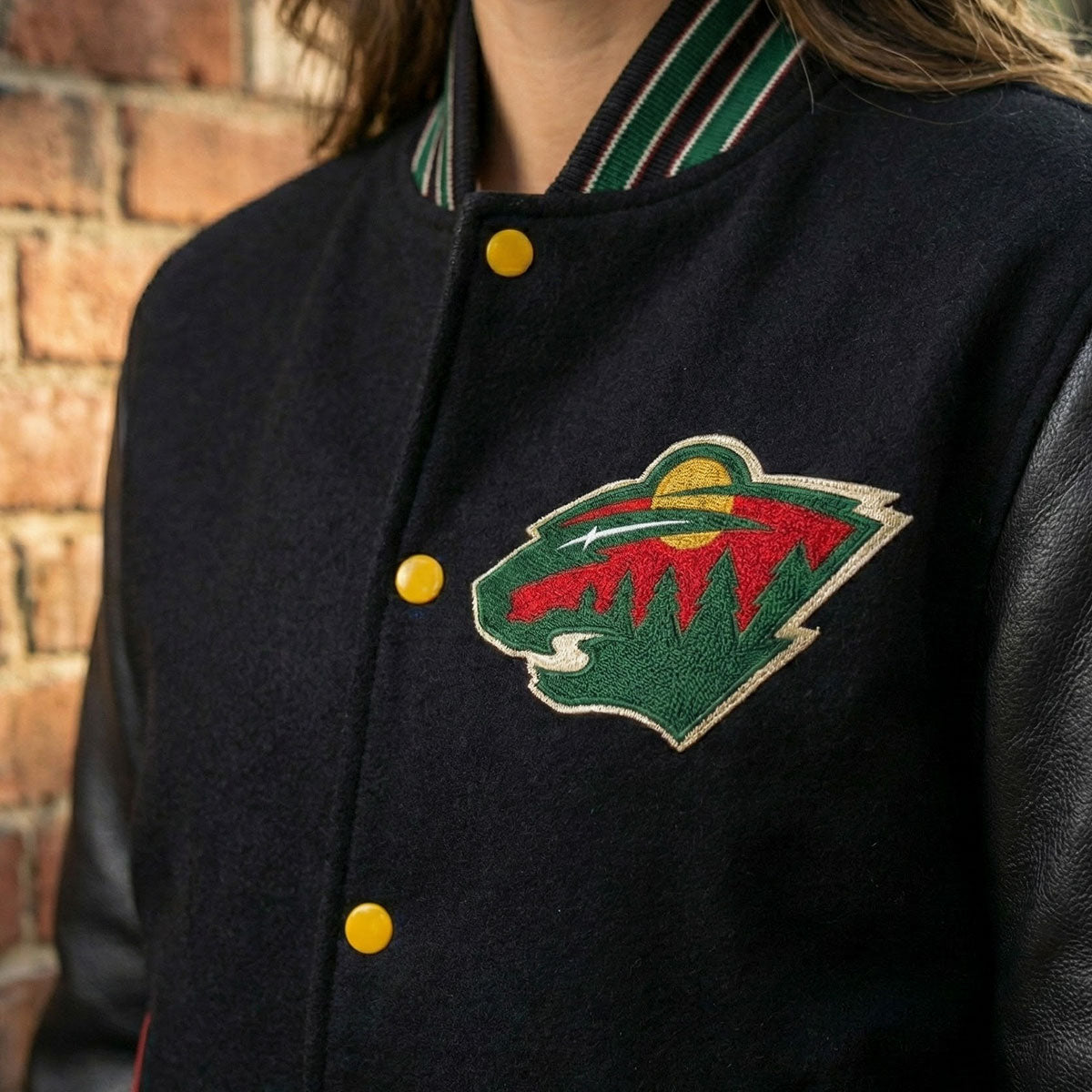 Letterman Minnesota Wild Black Varsity Jacket - NHL