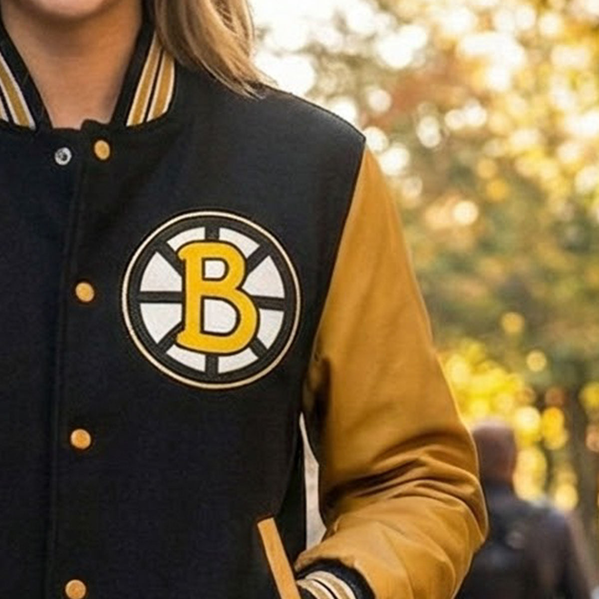 Letterman Boston Bruins Black and Yellow Varsity Jacket - NHL