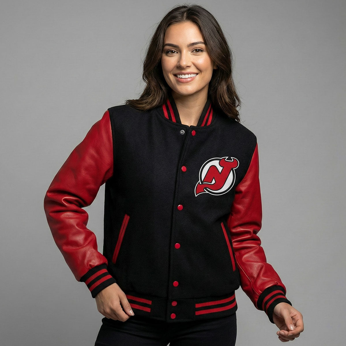 Letterman New Jersey Devils Black and Red Varsity Jacket - NHL