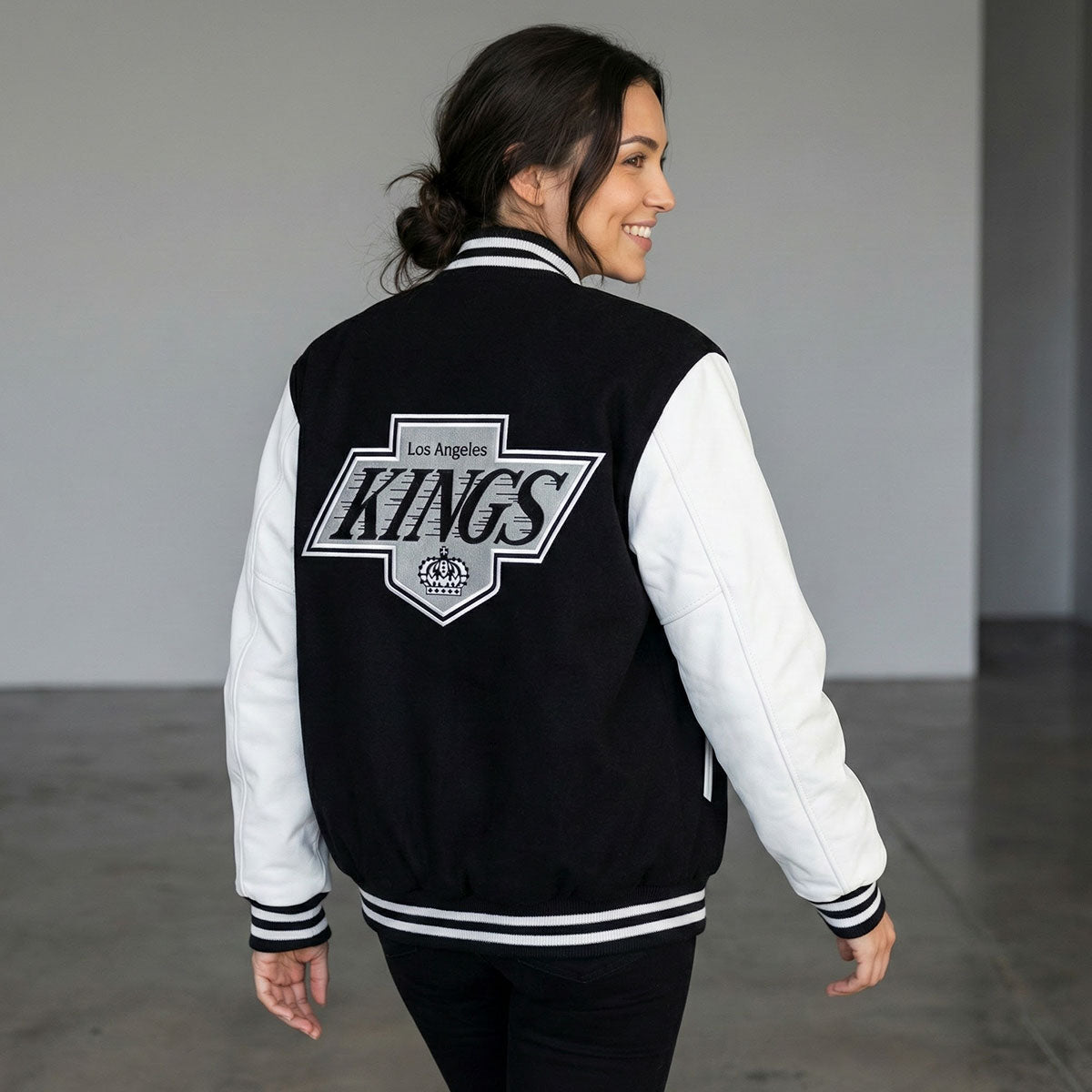 Letterman Los Angeles Kings Black and White Varsity Jacket - NHL