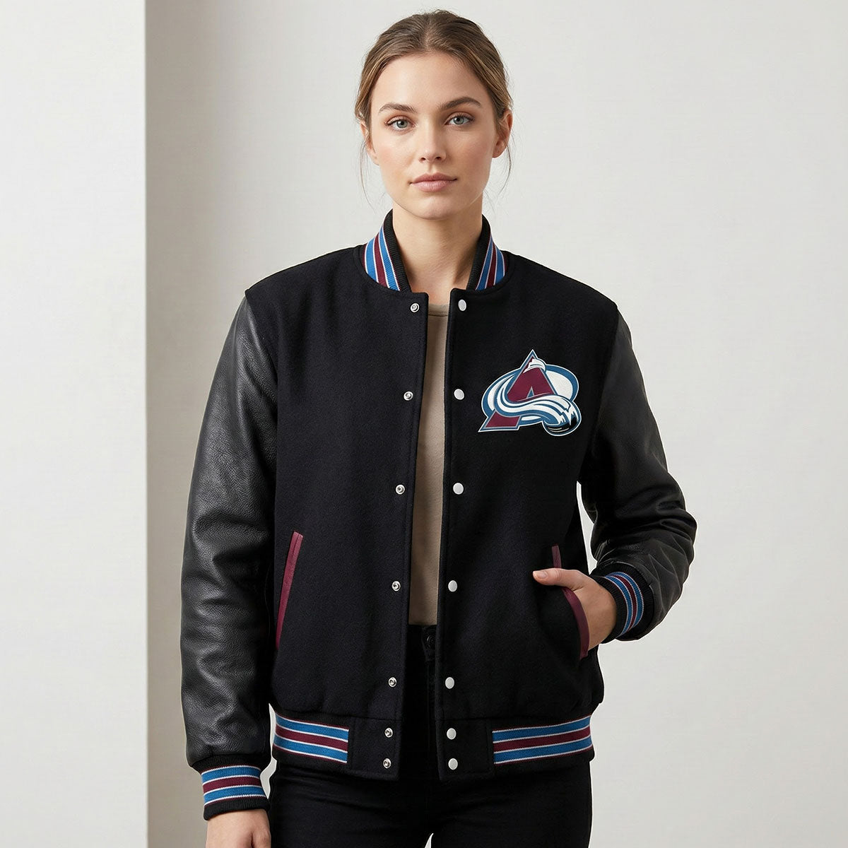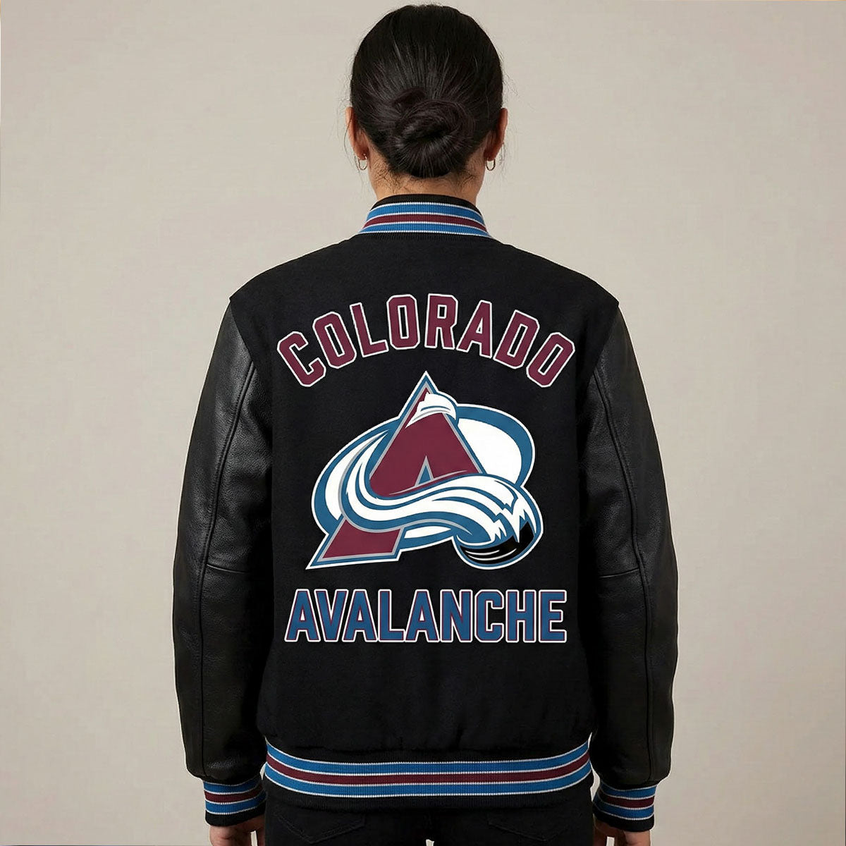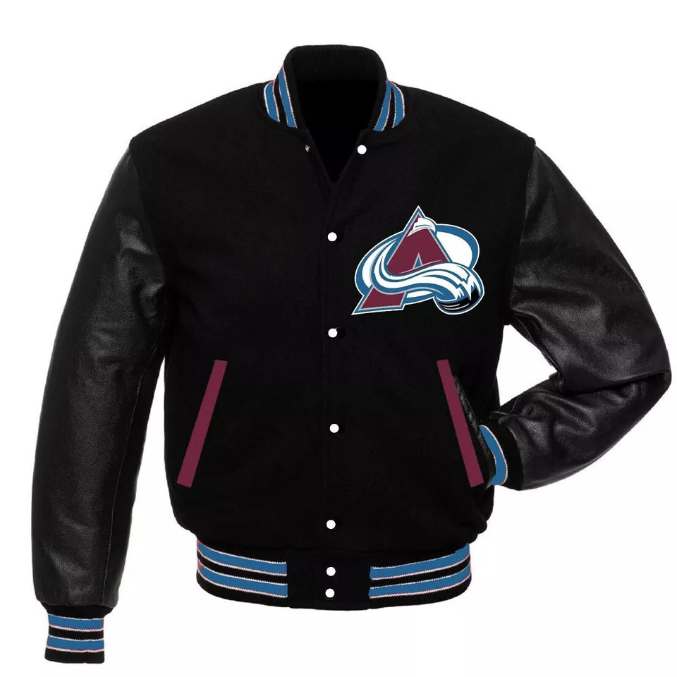 Letterman Colorado Avalanche Black Wool & Leather Vintage Varsity Jacket