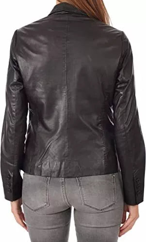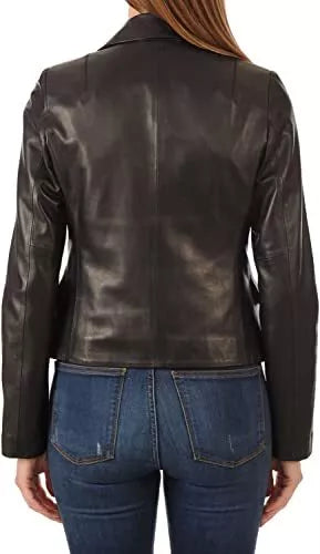 Black Leather Blazer Coat Jacket Women Lambskin Ladies Trench Biker