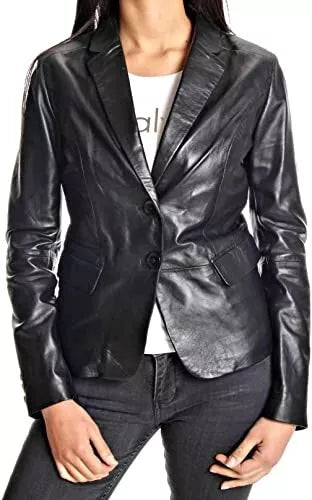 Leather Blazer Coat Jacket Women Lambskin Ladies Trench Biker Kim Fit Black
