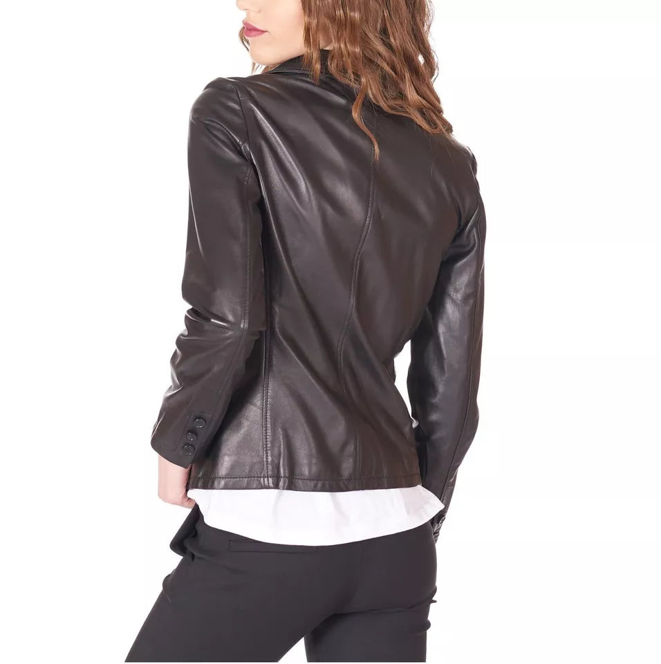 Leather Jacket Blazer Women Size Women lamb skin Coat Fitted Black