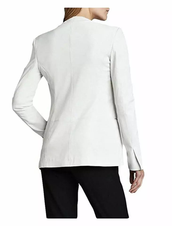 Women Leather Coat Blazer White Women Fit Size Designer Biker
