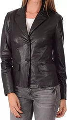 The Black Leather Blazer Coat Jacket Women Lambskin Ladies Trench Biker is a must-have for women who want to combine elegance with bold, modern style. Whether you’re dressing it up for a formal event or pairing it with casual wear for an elevated look, this jacket will keep you feeling confident and stylish