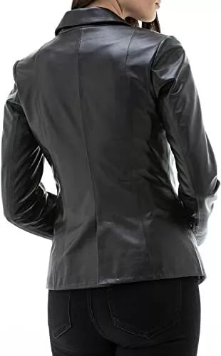 Leather Blazer Coat Jacket Women Lambskin Ladies Trench Biker Kim Fit Black