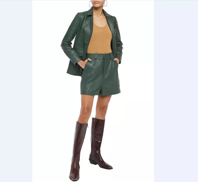Leather Blazer Coat Women Lambskin Ladies Biker Kim Fit Green