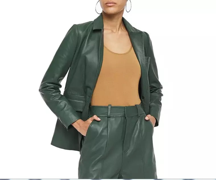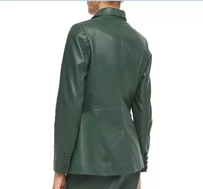 The Leather Blazer Coat for Women in Lambskin Green is a sophisticated yet edgy outerwear piece, offering both style and practicality. Whether you're dressing for a special event or adding an element of style to your everyday wear, this blazer coat is sure to make a statement