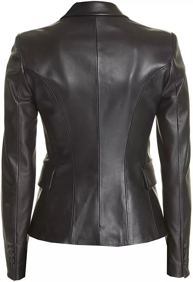 The Leather Jacket Blazer Women Lambskin Fitted Black Coat is a must-have piece for any wardrobe. Whether you're dressing up for a business meeting, an evening out, or simply looking to elevate your everyday style, this fitted leather blazer ensures you look chic and confident with ease