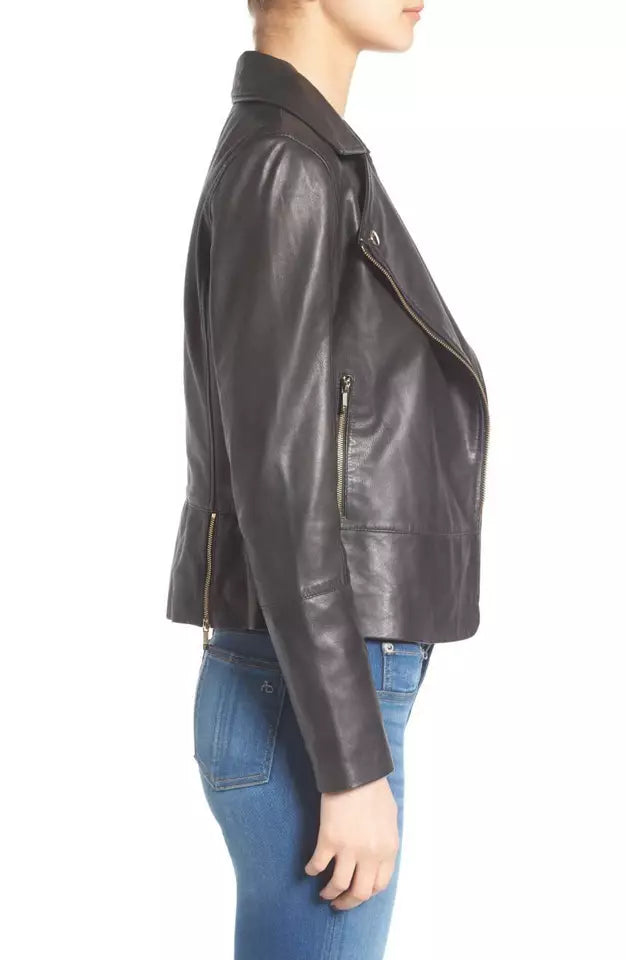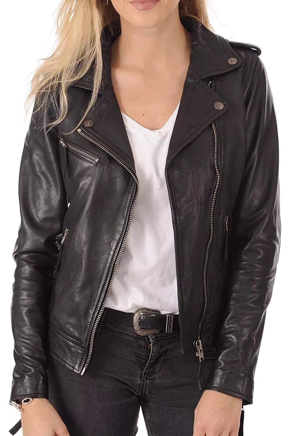 Jacket Leather Women Black Motorcycle Coat Biker Vintage Lambskin