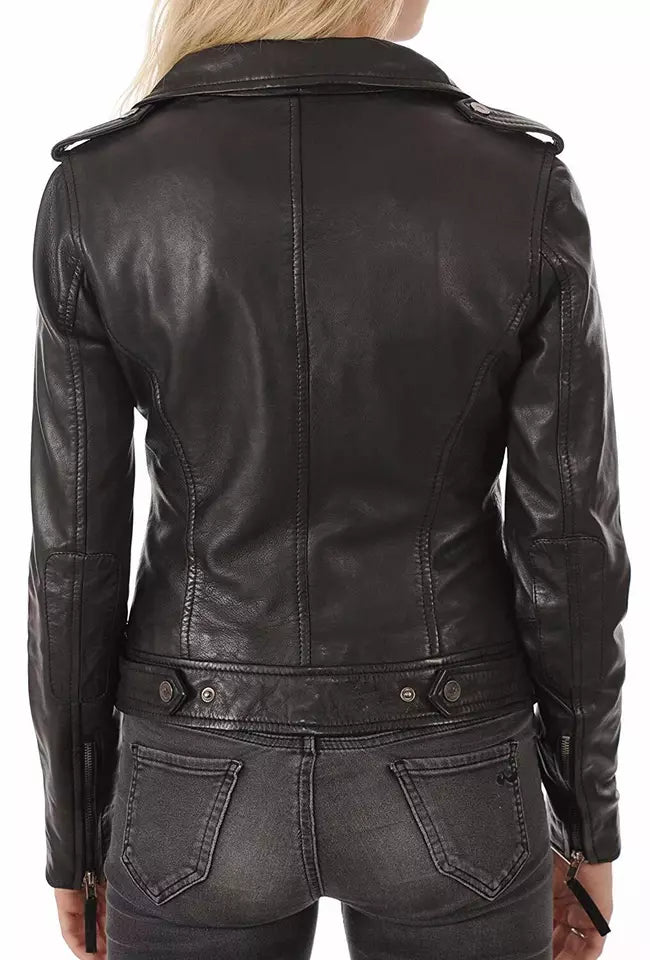 Women Biker Motorcycle Soft Real Black Leather Jacket