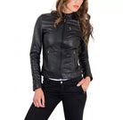 Leather Jacket Women Biker Motorcycle Women Soft Fit Size Real Black