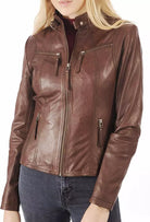 Leather Jacket Women Biker Motorcycle Women Soft Fit Size Real Brown