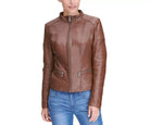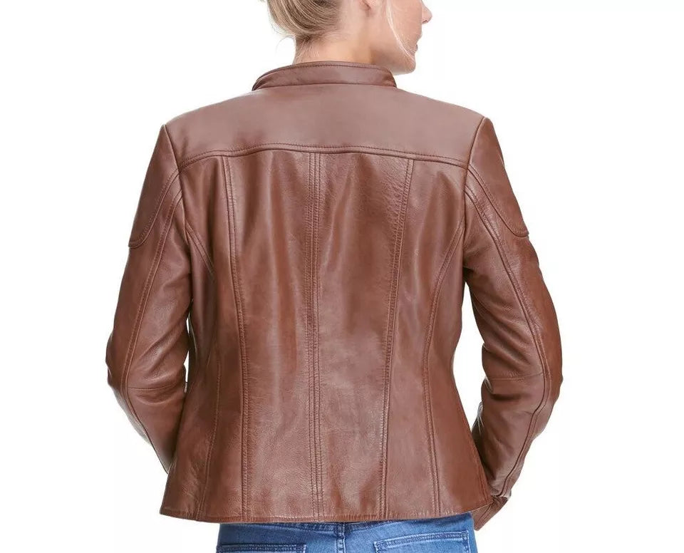 Leather Jacket Women Biker Motorcycle Women Soft Fit Size Real Brown