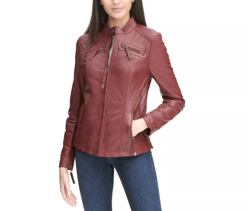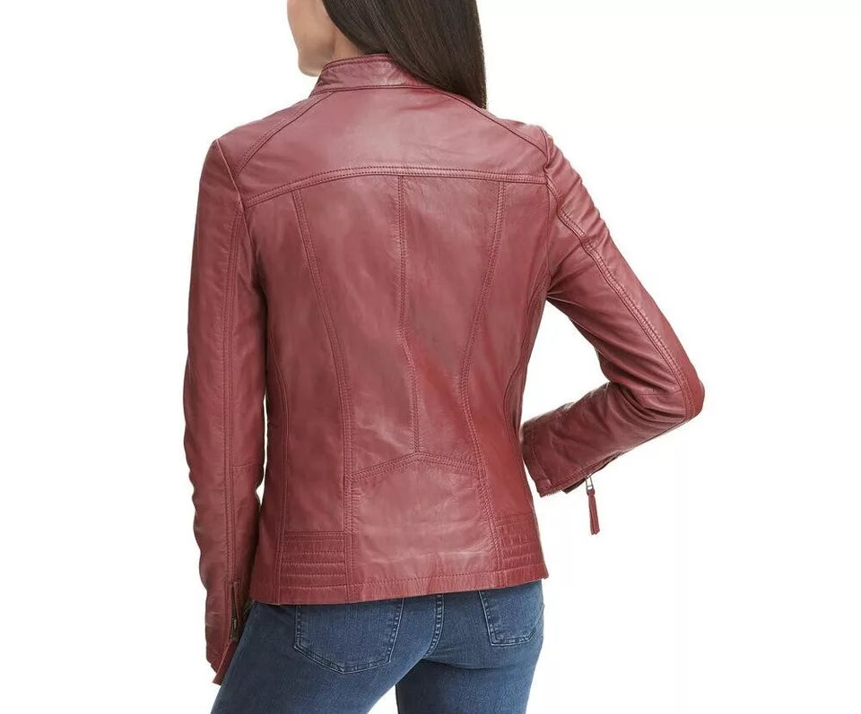 Leather Jacket Women Biker Motorcycle Women Soft Fit Size Real Red