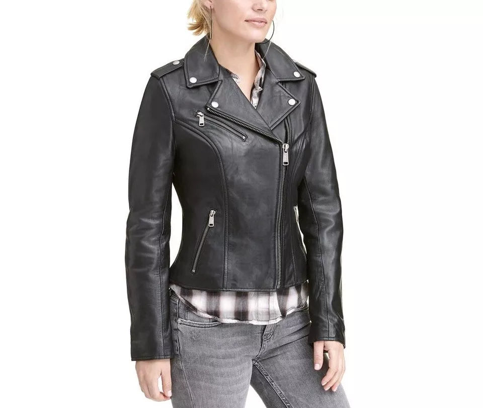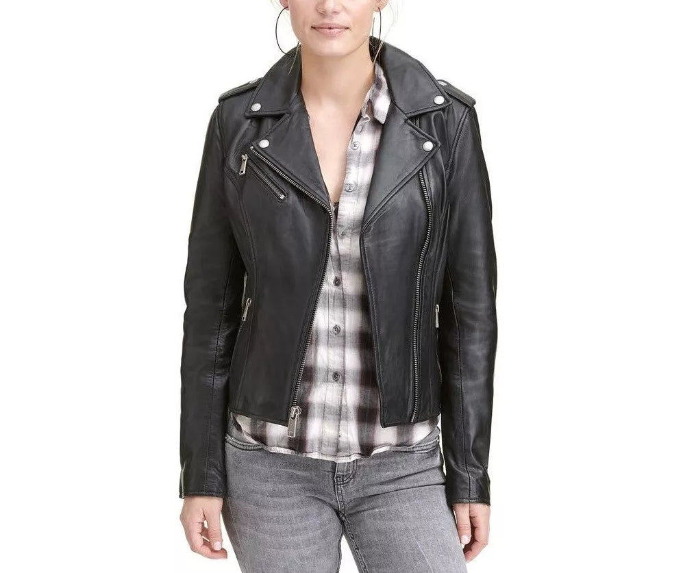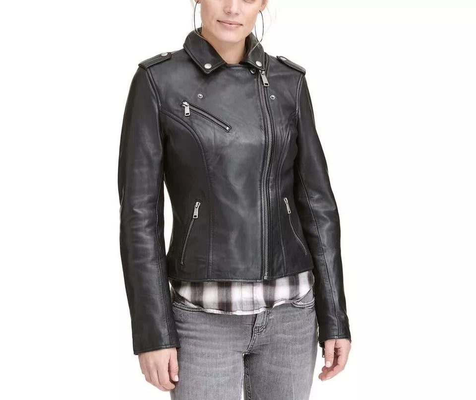 Leather Jacket Women Biker Motorcycle Women Soft Real Black