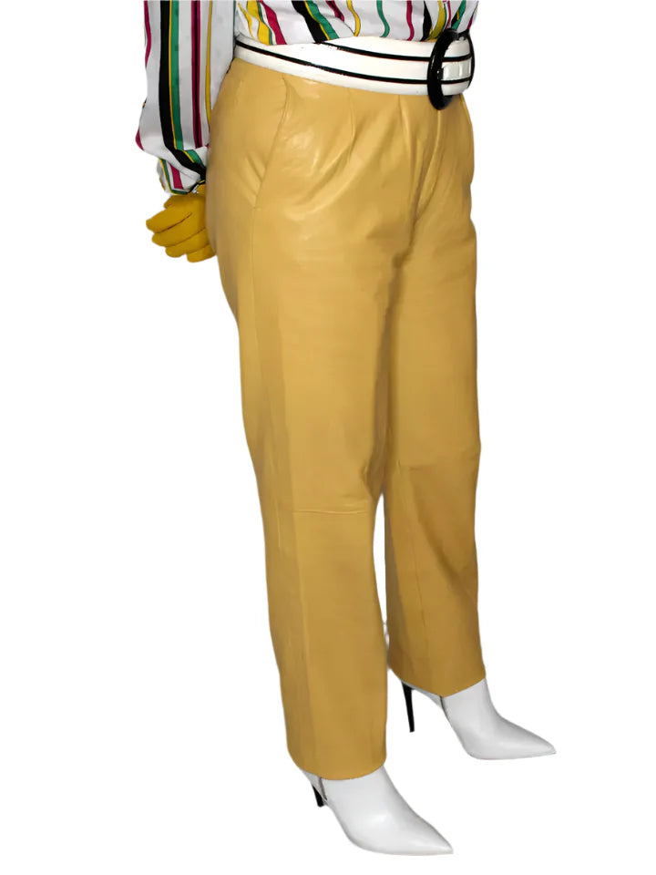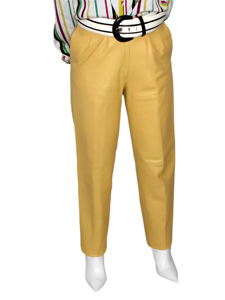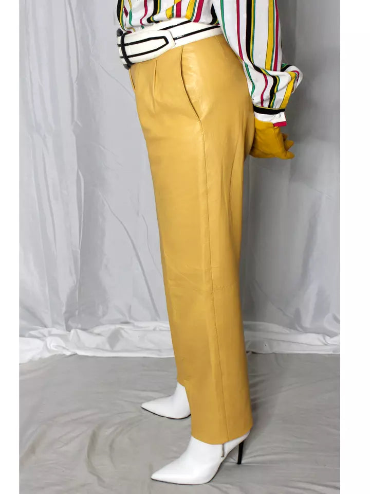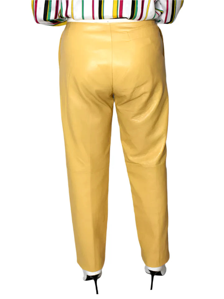 Women Leather Pants Yellow SOFT Lambskin Vintage