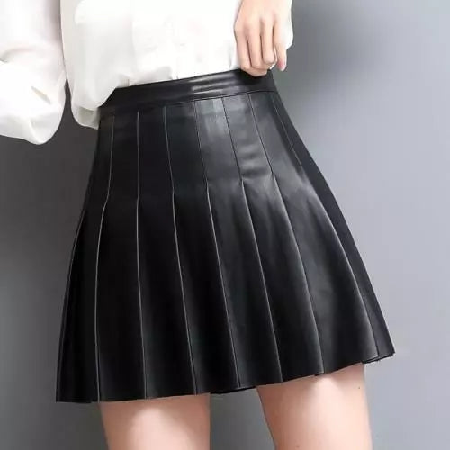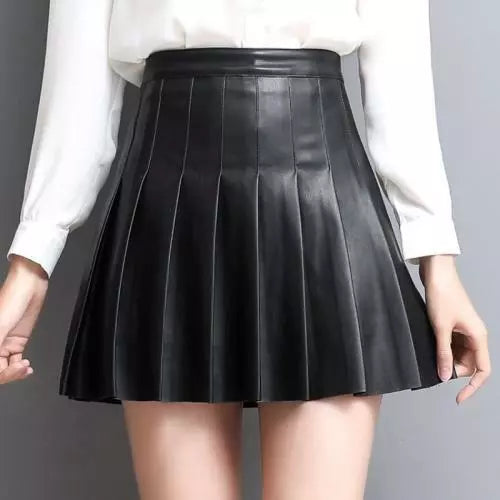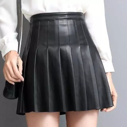The Women’s Genuine Leather Skirt in Black combines classic style with contemporary flair. Made from premium genuine leather, this pleated mini skirt offers a slim, flattering fit with a high-waisted design that accentuates your silhouette. The pleats add movement and texture, giving this skirt a sophisticated yet edgy appeal. Perfect for both casual and semi-formal occasions, this sleek A-line skirt is versatile, stylish, and an essential piece in any fashion-forward wardrobe.