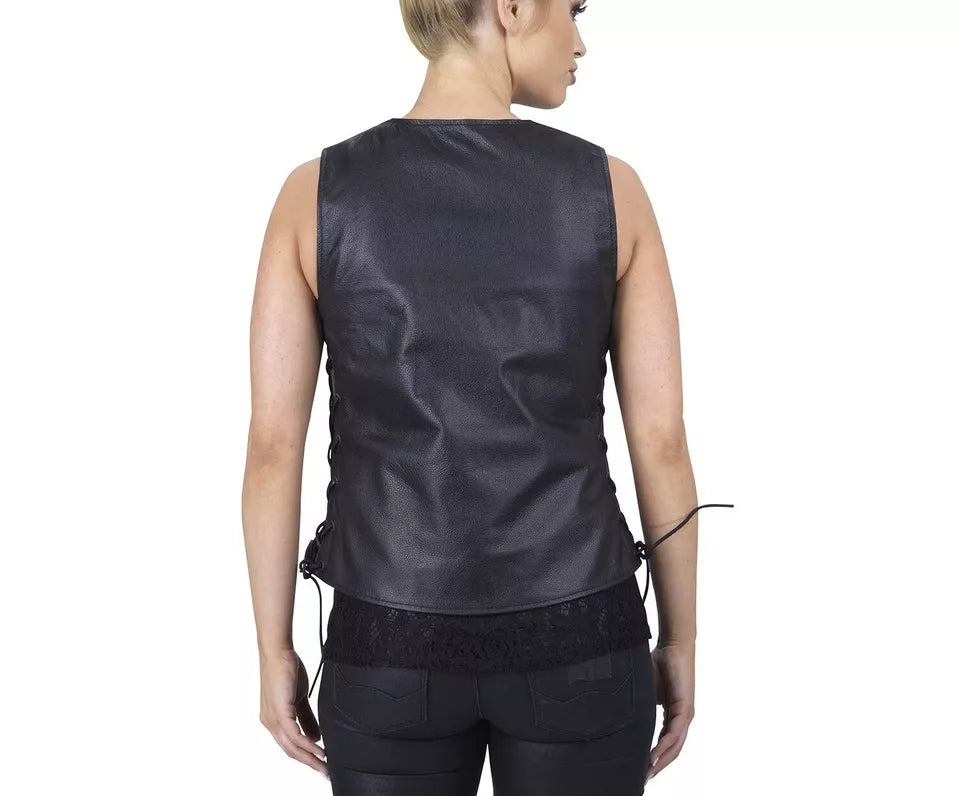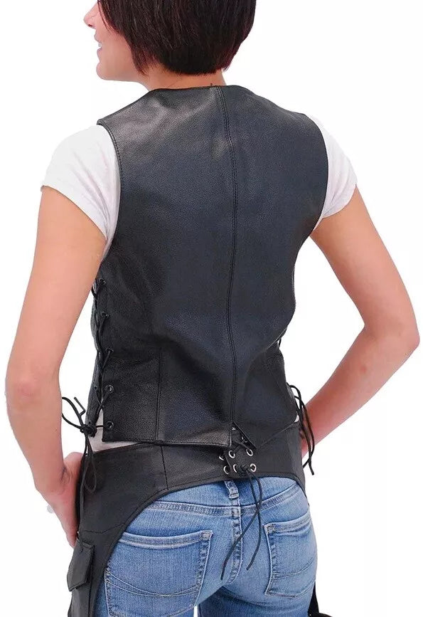 Leather Vest Women Jacket Motorcycle Size Biker Club Womens Gun Pockets Black