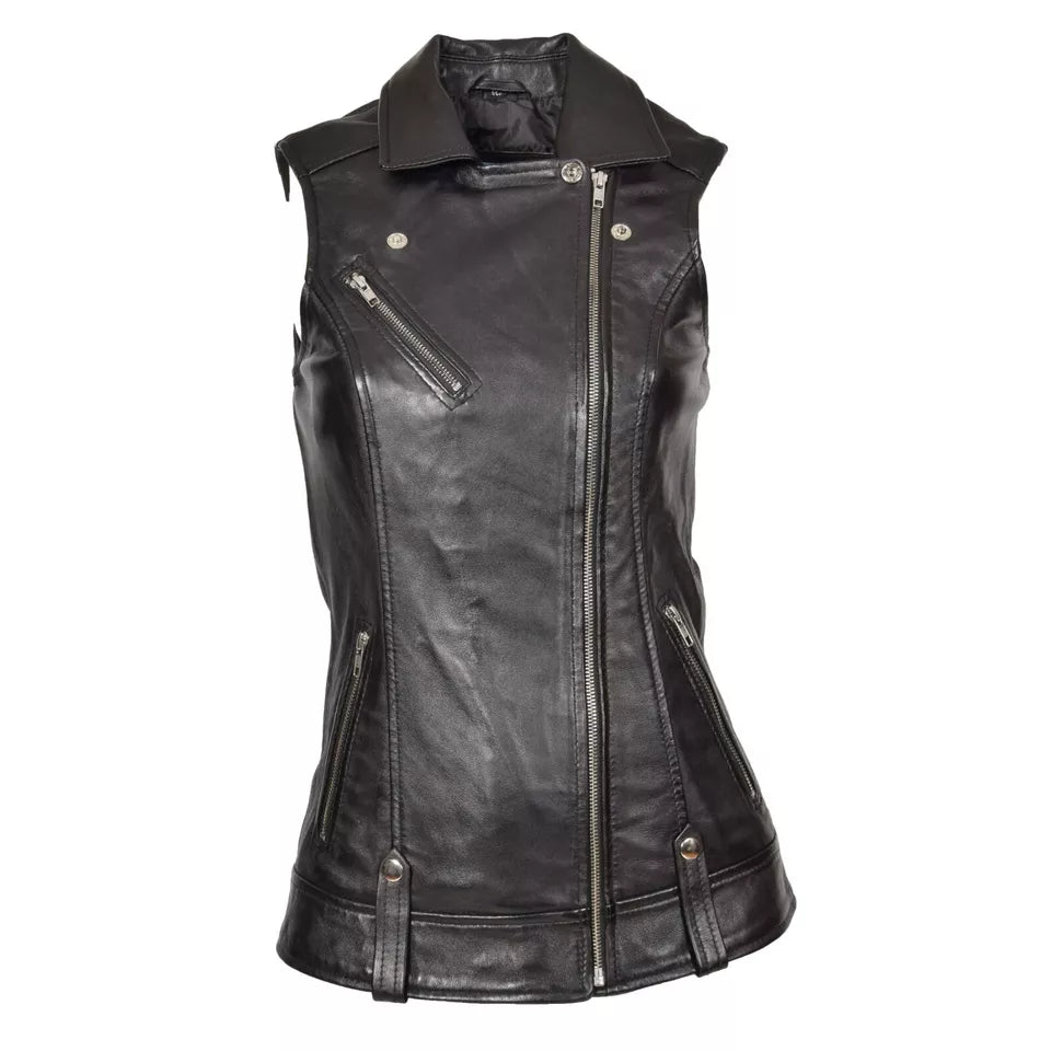 Black Women Genuine Leather vest Biker Sheepskin Fashion