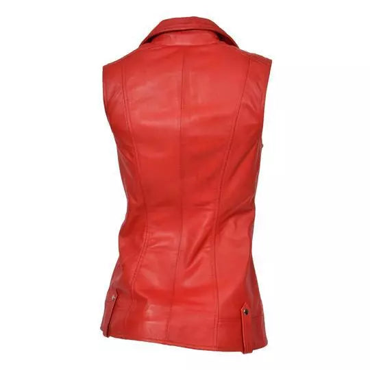 Women Genuine Leather Vest Biker Sheepskin Fashion Red