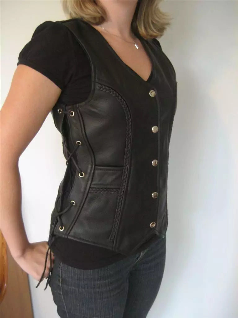 Biker-Inspired Style: The biker-style design gives the vest a cool, rebellious edge while still maintaining an elegant and feminine silhouette.