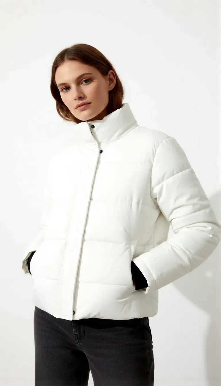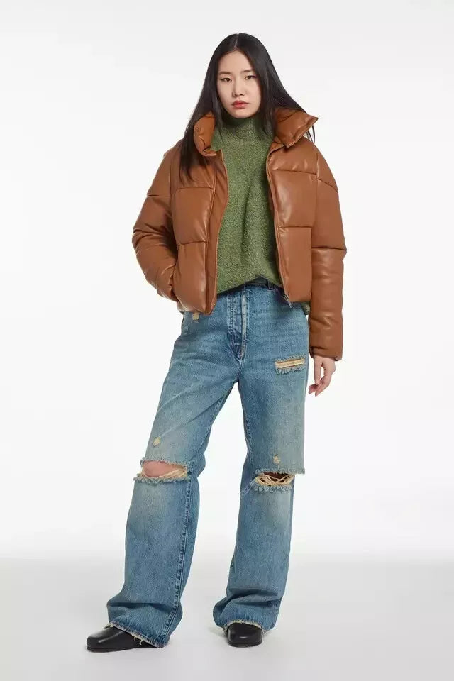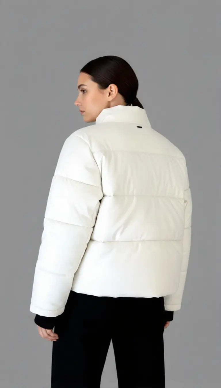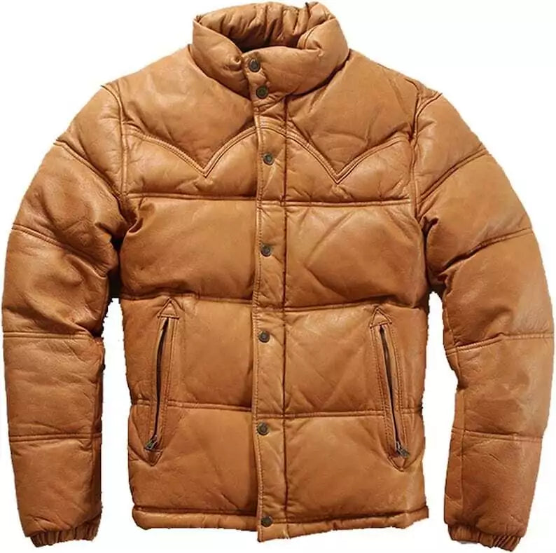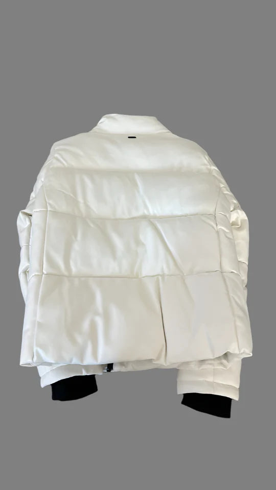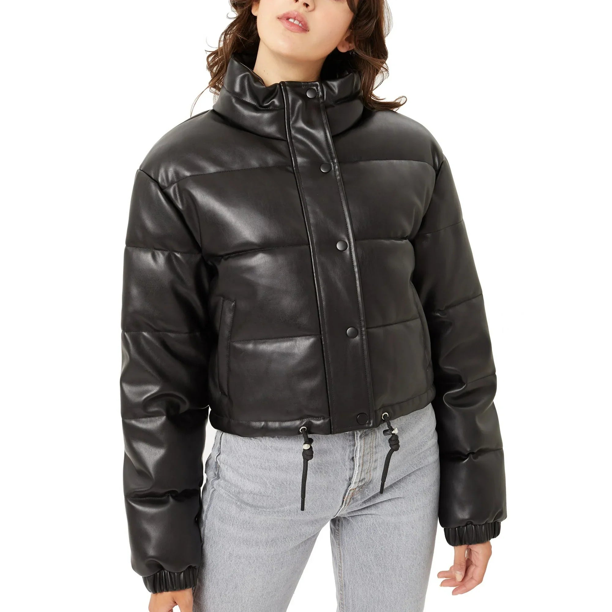 Women Vegan Leather Mocha Brown Puffer Jacket