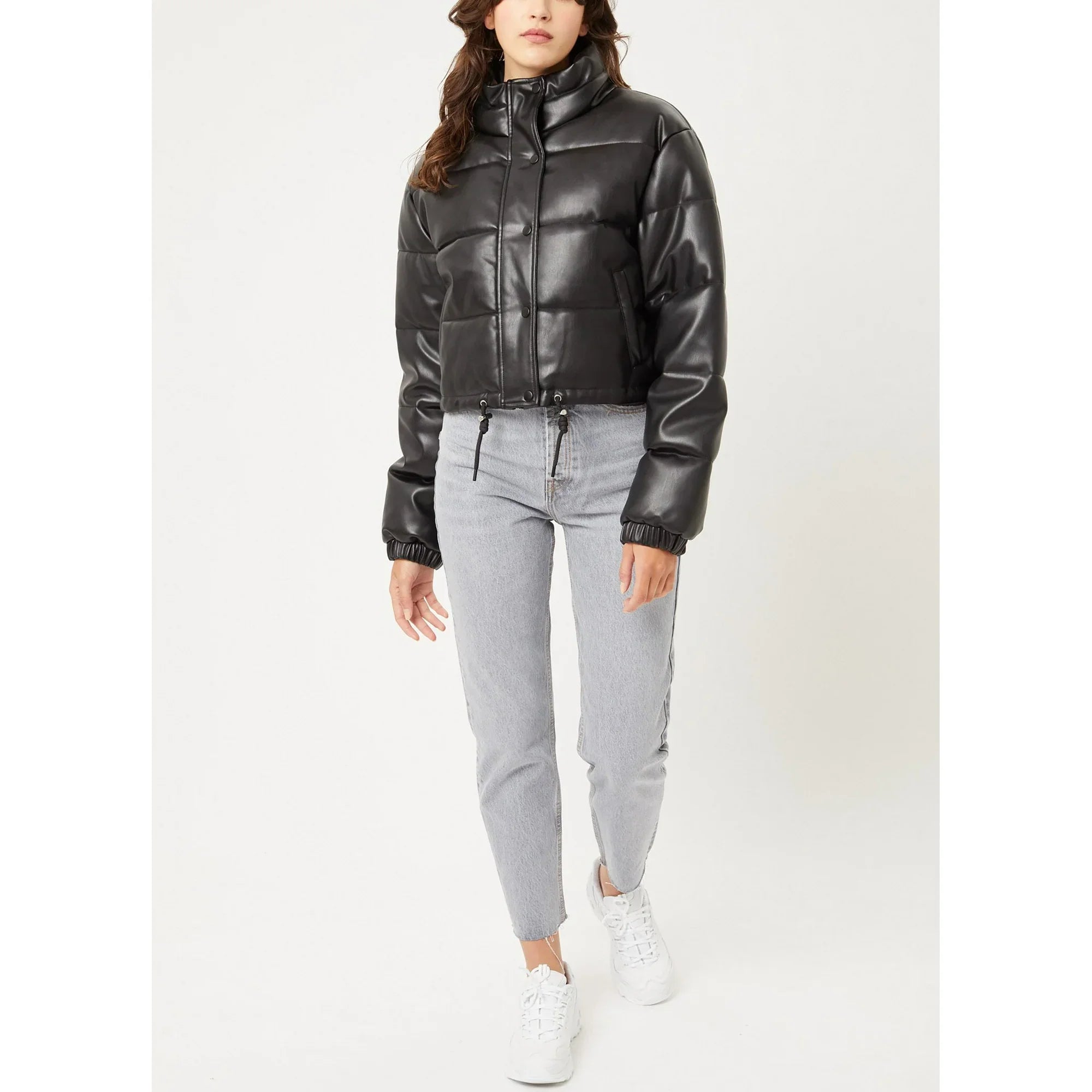 Women Puffer Jacket Ladies Genuine Leather Bomber Black
