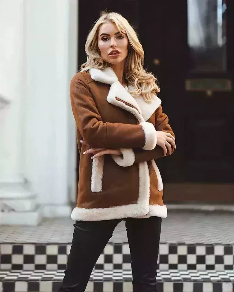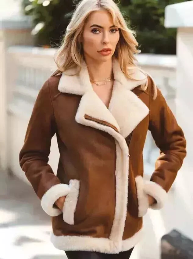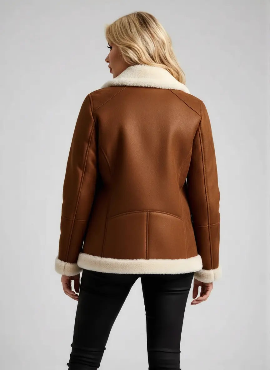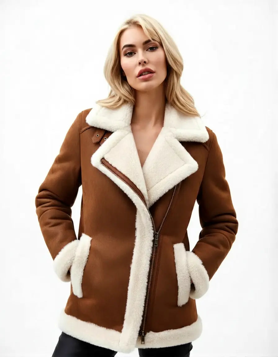 • Perfect for Cold Weather: The combination of shearling and leather ensures you stay warm without compromising on style, making it perfect for cold weather or winter travel.