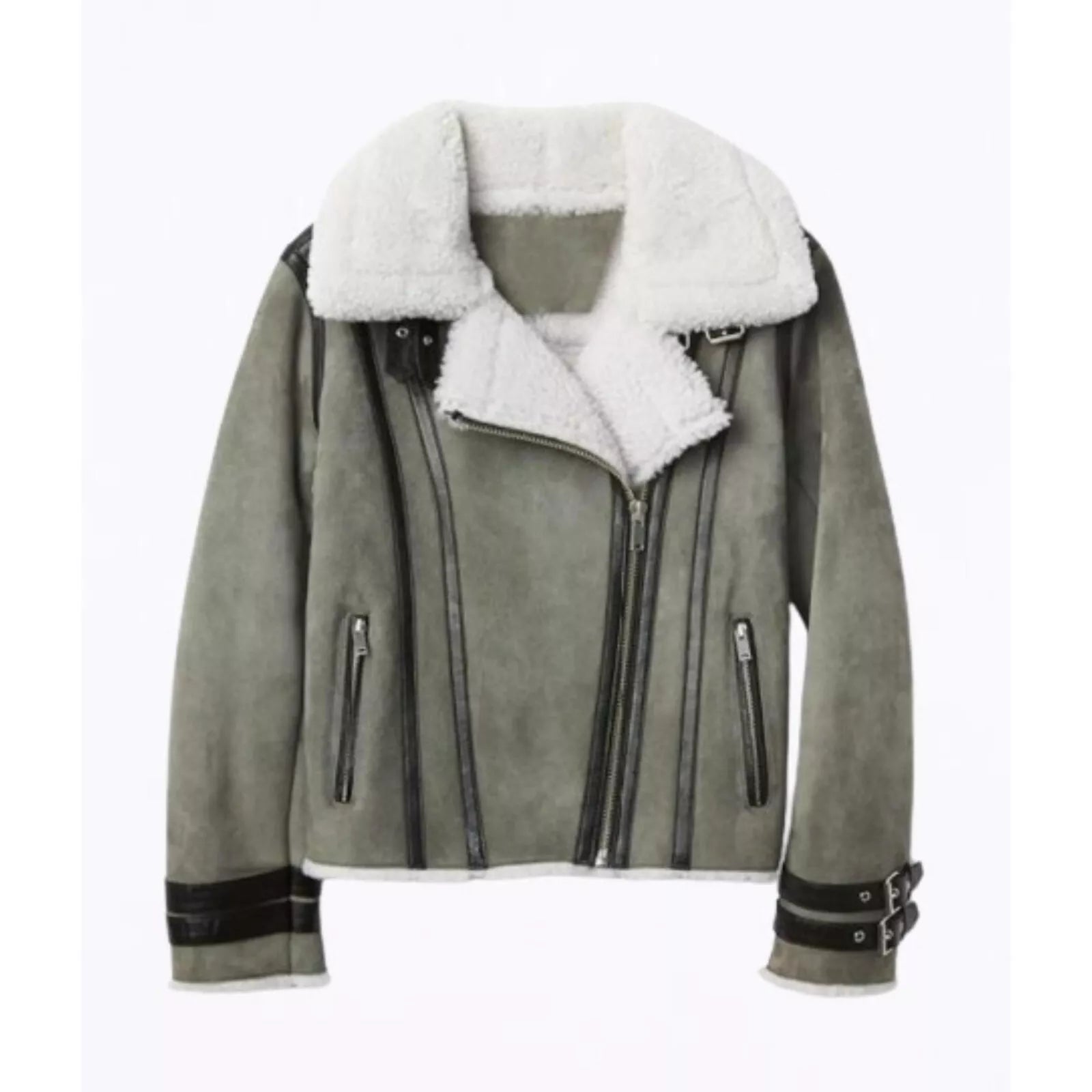 Women Grey Suede Shearling Jacket Handmade Grey Leather Jacket