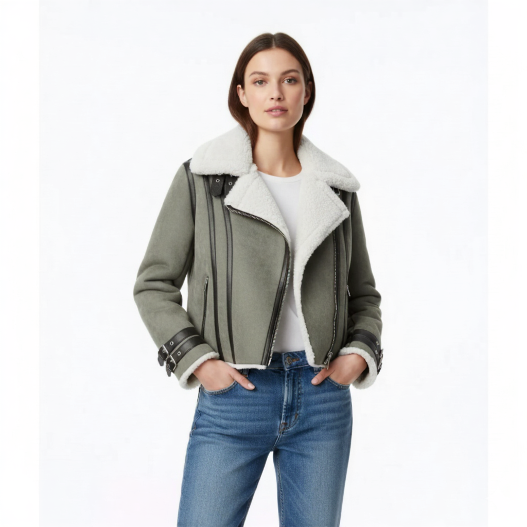 Chic and Elegant Look: With its unique combination of suede and shearling, this jacket provides a chic and elegant appearance, perfect for casual outings or more sophisticated events.