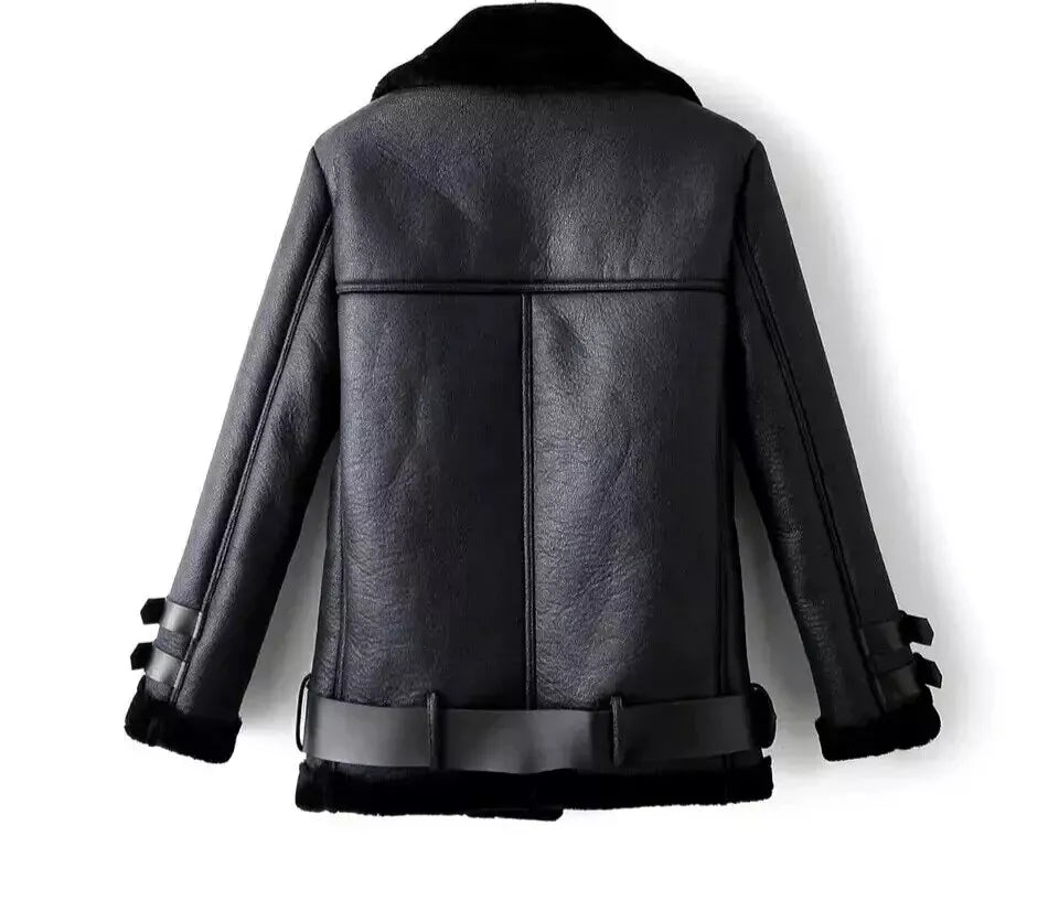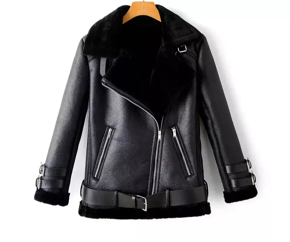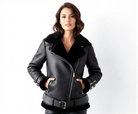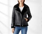 Women Leather Jacket Bomber Aviator Flying Shearling Bomber Jacket