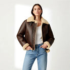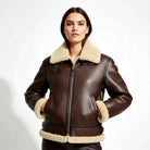 Women RAF Aviator Pilot Flying Bomber Shearling Fur brown Leather Jacket