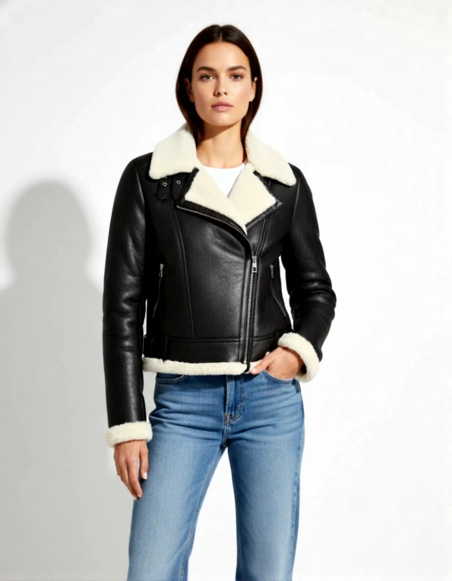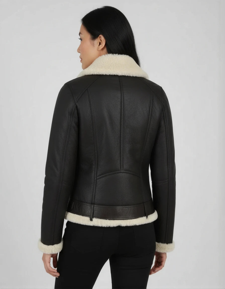 The Women's RAF B3 Bomber Aviator Leather Jacket offers a perfect blend of style and warmth. Crafted from genuine leather and lined with soft sheepskin fur, this classic aviator jacket is designed to provide comfort and durability, making it ideal for colder weather and aviation-inspired fashion.