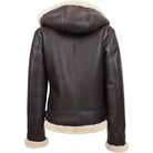 Women Real Sheepskin Flying Jacket Brown Hooded Shearling B3 Pilot Aviator Coat