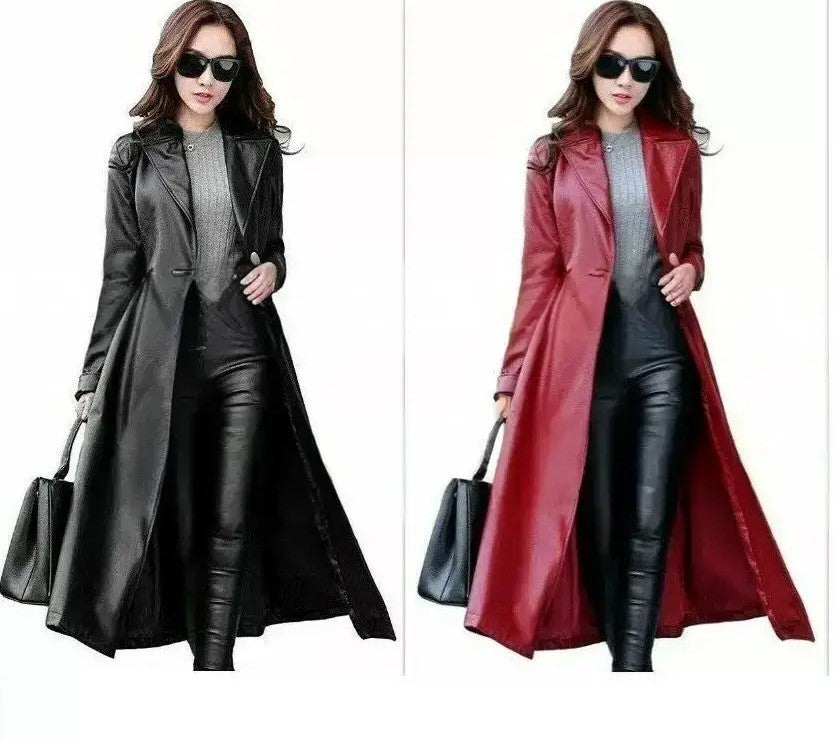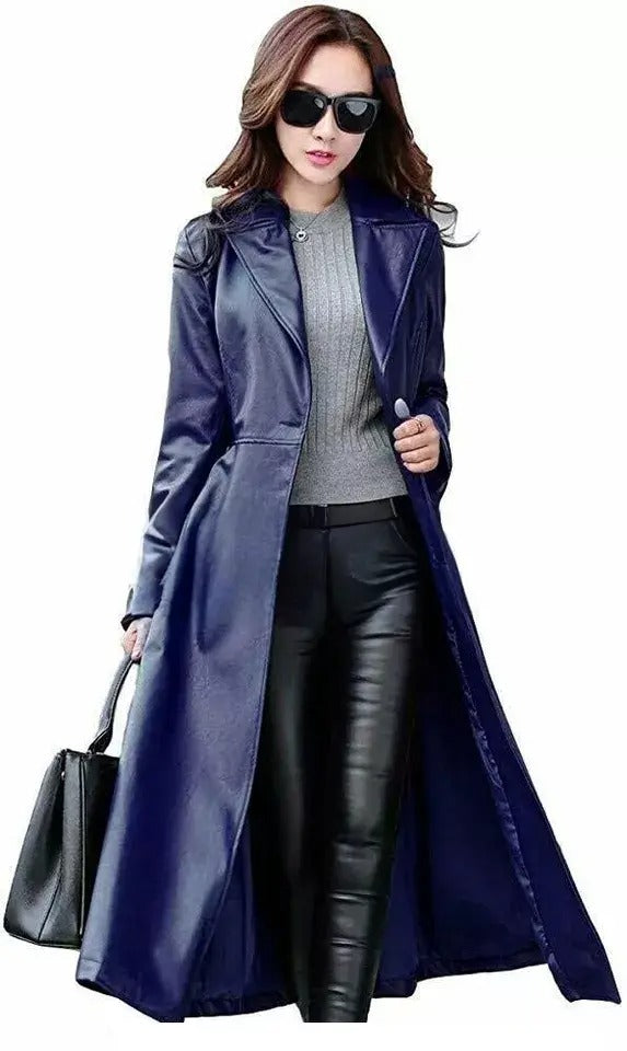 Ladies Stylish Genuine Lambskin Real Leather Long Coat Trench Coat Women Jacket different colours