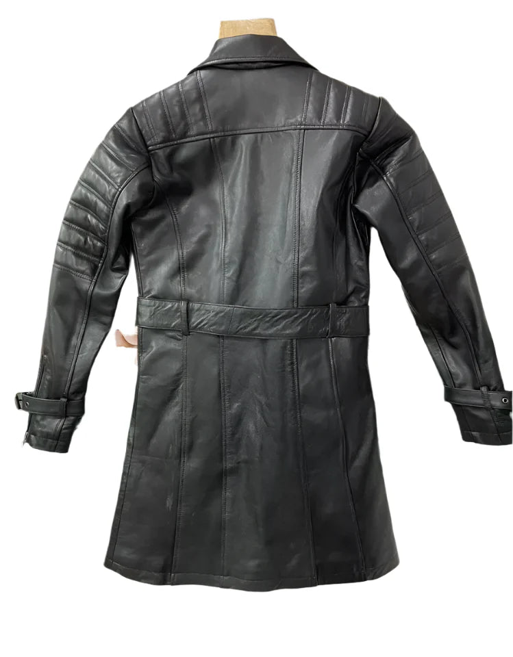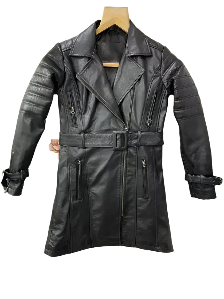 Mid-Length Trench Design: The classic trench coat style with a contemporary biker twist, making it ideal for layering while maintaining a flattering shape.
