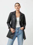 The Women’s 100% Genuine Leather Black Trench Coat combines high-fashion elegance with an edgy biker influence. This coat is a must-have for women who want to stay warm, stylish, and a little bit rebellious, making it an essential piece for any modern wardrobe.