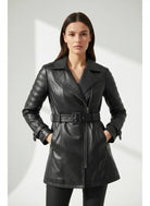 The Women’s 100% Genuine Leather Black Trench Coat is a perfect fusion of sleek sophistication and edgy style. Made from high-quality genuine leather, this mid-length trench coat features a bold biker zipper design that adds a modern, rebellious touch to the classic trench silhouette. Whether you're dressing up for an evening out or layering over your favorite casual outfits, this versatile coat is ideal for a chic and polished look with a bit of an edge.