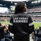 Whether you're heading to Allegiant Stadium, watching the game with friends, or adding a statement piece to your everyday wardrobe, this varsity jacket delivers authentic team spirit with premium quality. The combination of black satin sheen, embroidered details, and classic letterman silhouette makes this jacket a standout addition to any Raiders fan's collection.