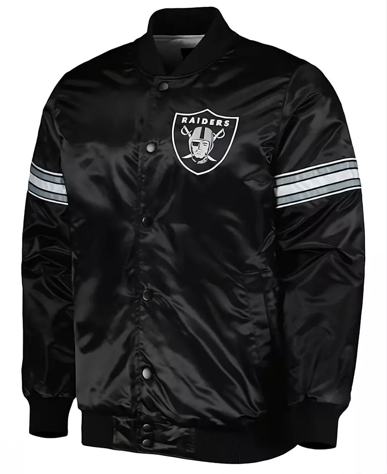 Las Vegas Raiders Black Satin Varsity Jacket full-snap Embroidery logos black - NFL