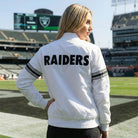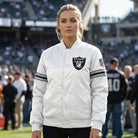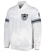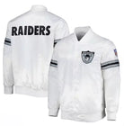 Las Vegas Raiders White Satin Varsity Jacket full-snap Embroidery logos - NFL