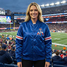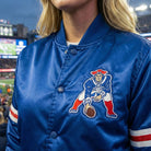 This satin bomber varsity jacket offers a contemporary take on traditional letterman style with the legendary Patriots blue. The lightweight satin fabric makes it ideal for milder game days or as a statement layer year-round. Whether you're at Gillette Stadium or out on the town, the embroidered logos and polished finish ensure you rep the Patriots dynasty in style.