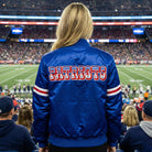 Show your Patriots pride in sleek style with this striking blue satin bomber varsity jacket featuring embroidered team logos. Designed for fans who want a polished, modern look with authentic team spirit, this letterman jacket delivers classic NFL style with a refined satin finish.