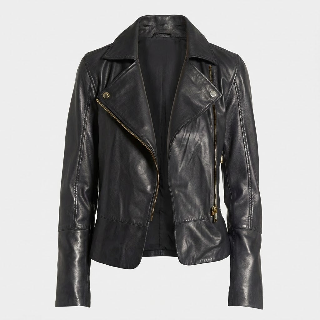 Premium women's leather jackets in biker, bomber, moto and classic styles. Includes fitted motorcycle jackets with asymmetric zippers, cropped bomber designs, cafe racer styles, flight jackets, moto jackets with quilted details and contemporary minimalist designs with genuine leather construction.