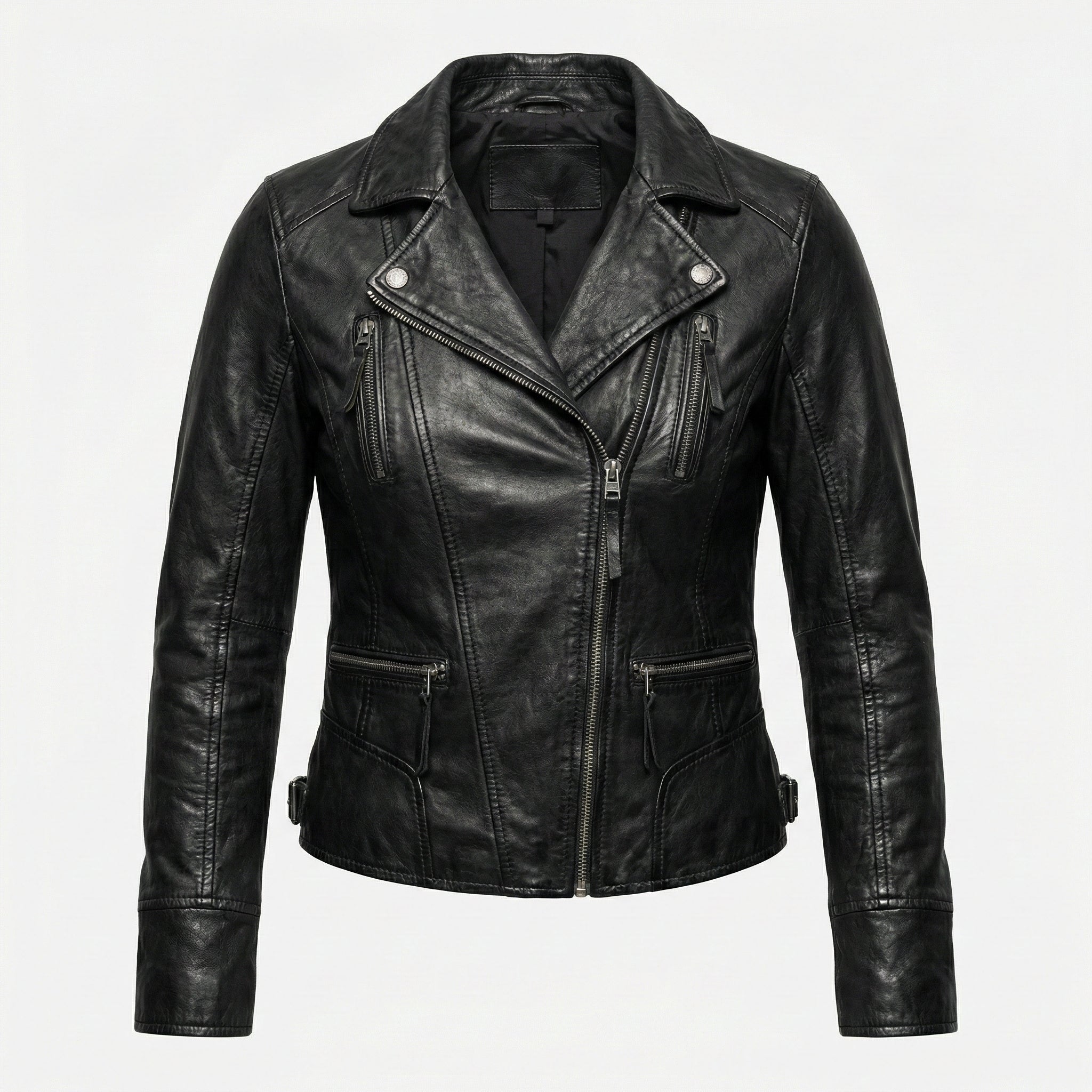 The Women's Biker Leather Jacket in Real Black is a timeless piece that combines classic style with modern comfort. Made from high-quality real leather, this jacket offers a soft fit that flatters the female form while ensuring durability and long-lasting wear. The sleek black color makes it a versatile addition to any wardrobe, easily pairing with both casual and dressed-up outfits. Designed for motorcycle enthusiasts, it features biker-inspired details such as a sturdy zip-up closure and durable stitching, making it both stylish and practical for your rides. Available in a variety of sizes, this jacket ensures a comfortable fit for every woman.